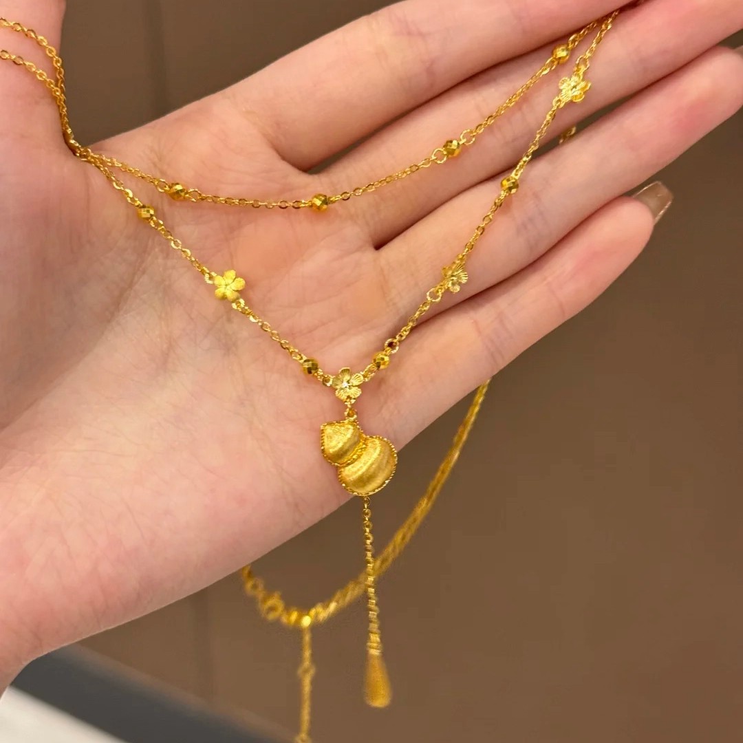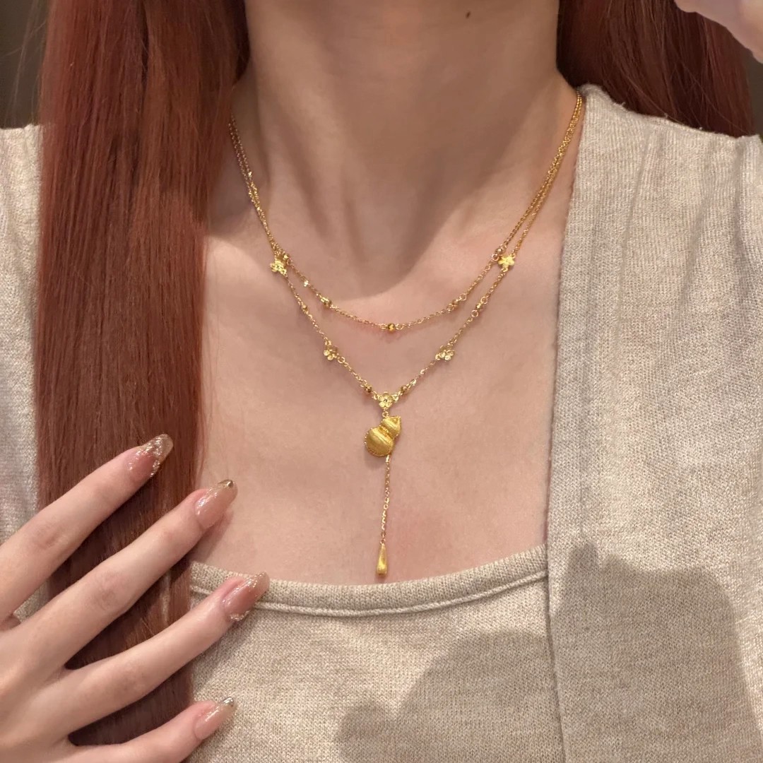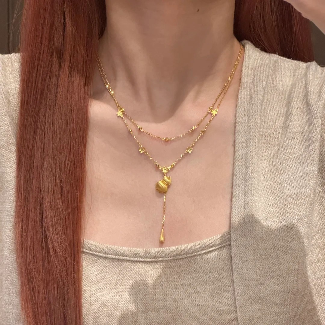 Color: LL Double-Layer Chain Necklace with Fu, Lu, and Shou Flower Design